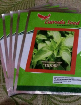 Benih Bibit Unggul Daun Kemangi TIDORE Garuda Seed, kemasan asli Isi bersih: 5 gram biji benih per kemasan asli Kemurnian: 90% Daya Tumbuh: 85% Rekomendasi Tanam: Dataran Rendah – Tinggi Dapat ditanam dibedengan, Pot atau polybag ukuran diameter 30-40 cm, jarak tanam 30-40 cm atau bisa juga mengunakan sistem Hidroponik