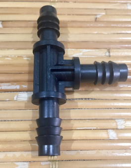 Double Tee T Reducer Connector 8x11mm to 4x7mm Konektor 8 mm x 11 mm ke 4 mm x 7 mm utk Hidroponik Fertigasi Vertical Garden dll – Digunakan untuk menyambung selang PE/PVC dalam sistem irigasi. – Ukuran selang di sisi kiri dan kanan: 8 mm x 11 mm atau 9 mm x 12 mm (diameter… selengkapnya